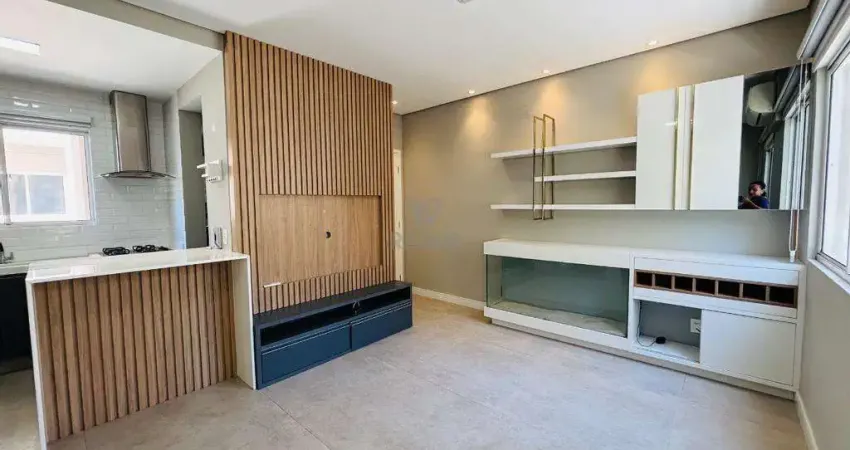 Com acabamento em porcelanato, o apartamento também oferece aquecimento de água a gás e ar-condicionado, rico em marcenaria.