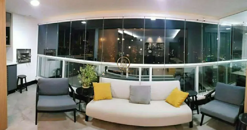 Conta com living ampliado, cozinha planejada estilo americana, varanda gourmet totalmente fechada com blindex, lavabo e duas suítes. Todo o apartamento possui marcenaria sob medida e climatização.