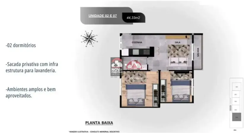 - Área Útil: 44,33 m²
