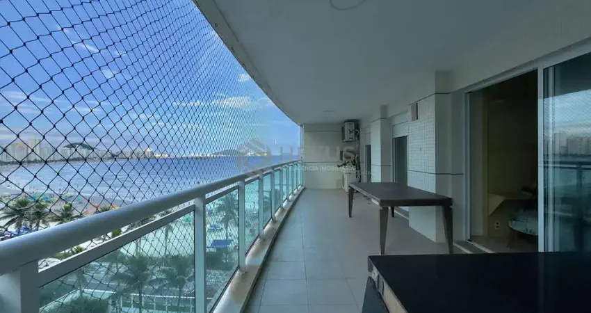 Apartamento frente ao mar com varanda gourmet com vista mar e lazer de clube na Praia das Astúrias à venda, Guarujá-SP.