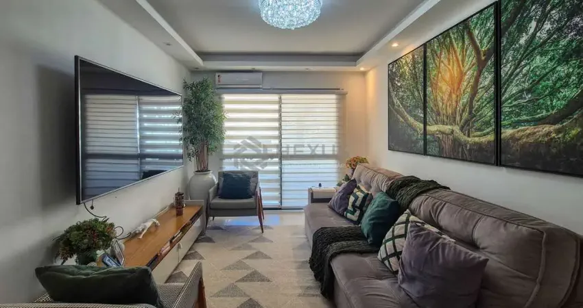Apartamento reformado com varanda em prédio com lazer a uma quadra da praia à venda.