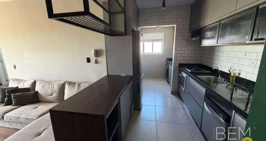Este apartamento de 77m² conta com 2 dormitórios, sendo 1 suíte, além de 1 vaga de garagem. A cozinha é equipada com cooktop e bancada com armários que a separa da sala, criando um ambiente integrado, funcional e prático para o dia a dia.