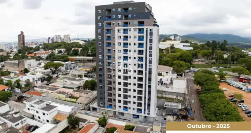 Apartamento à venda no bairro do Anhangabaú em Jundiaí com 83m², 2 suítes, varanda, lavabo, lavanderia, e 2 vagas de garagem cobertas.