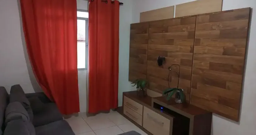 Com 2 dormitórios com piso laminado e armários embutidos, sala com painel, cozinha planejada com cooktop.