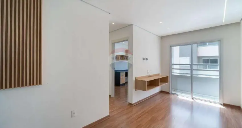A sala de estar conta com um painel para TV (home) e detalhes de madeira na parede, conferindo um toque moderno e sofisticado ao ambiente. Ela ainda conta com uma sacada que pode ser integrada a sala pois há a possibilidade de ser envidraçada. Um dos quartos foi transformado em um escritório funcional com móveis planejados, perfeito para quem trabalha de casa. O segundo dormitório, aconchegante, possui um guarda-roupa planejado que oferece bastante espaço para organização.