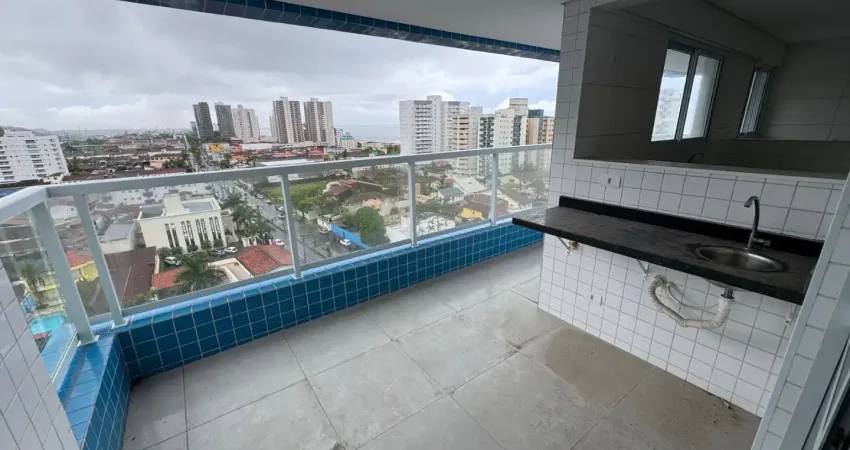 Apartamento no Centro de Mongaguá lado praia a 150 metros do mar com 2 dormitórios (1 suíte), varanda, área gourmet, lazer completo no condomínio e aceita financiamento bancário