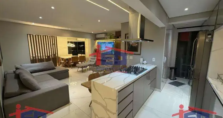 Lindo apartamento com 84m2 com 02 suítes, lavabo, sala ampla com ar-condicionado, churrasqueira na varanda, cozinha toda planejada. Móveis planejados, infraestrutura pronta para ar-condicionado no outro dormitório, decorado por arquitetos e 02 vagas de garagem.