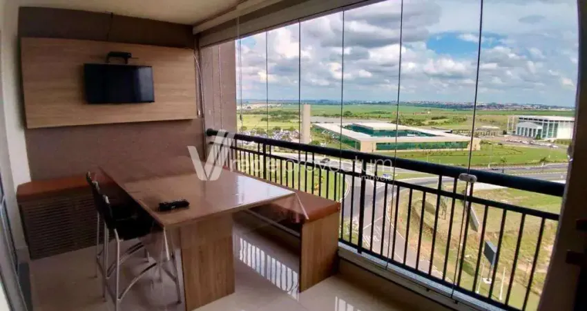 Apartamento para venda, no Condomínio Art Life, em Paulínia. Apresenta uma ampla sala para dois ambientes; sala de home teather, com portas; cozinha americana planejada, com cooktop e forno; área de serviço reservada; 2 quartos, sendo uma suíte; um banheiro social; varanda gourmet com fechamento em vidro e persiana.