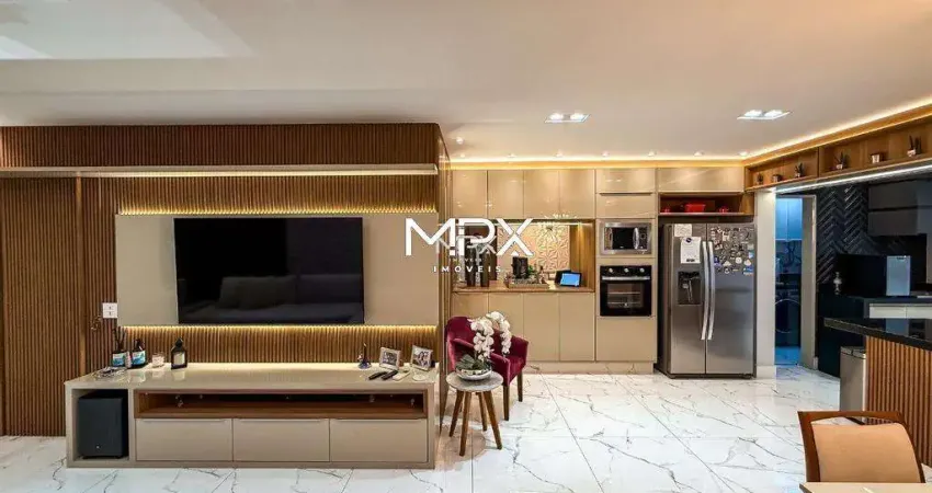 O imóvel é composto por 94 m² de área útil, que são distribuídos em sala 2 ambientes, 2 suítes, 3 banheiros, cozinha integrada, e, 2 vagas de garagem.
