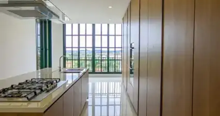Com 253 m² de área útil, o imóvel é composto por um amplo living, 2 suítes, 4 banheiros, 1 varanda e 3 vagas de garagem. A varanda se destaca pela vista exclusiva para as paisagens do condomínio, proporcionando um ambiente agradável e integrado ao entorno.