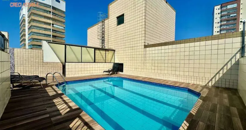 APARTAMENTO MOBILIADO DE 2 DORMITÓRIOS SENDO 1 SUÍTE NA AVIAÇÃO COM LAZER E PERTINHO DA PRAIA.