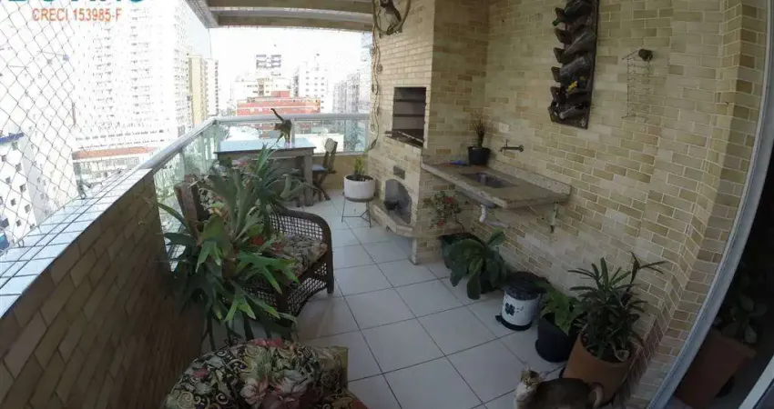 Praia do canto do forte, Andar alto, apartamento com sala ampla dois ambientes, sacada com churrasqueira a carvão e integrada com a sala, infra estrutura para ar split já instalada, cozinha estilo americana,