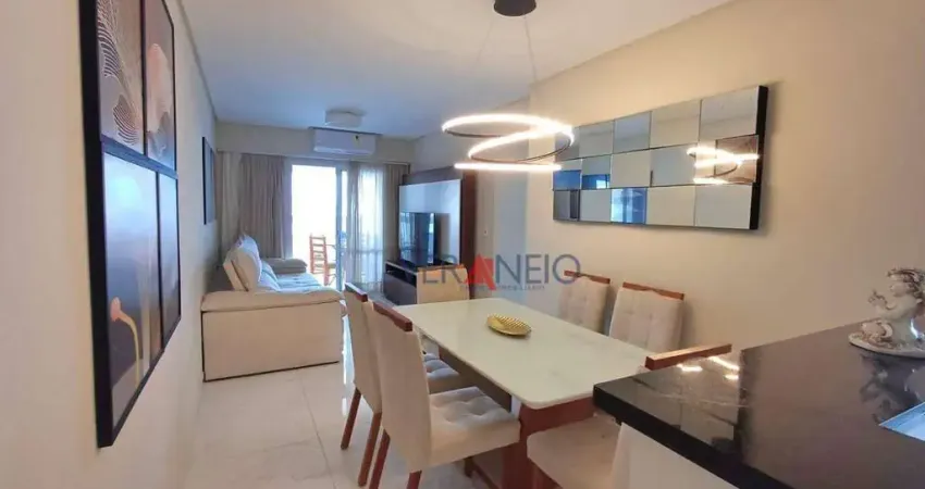 Apartamento mobiliado com 2 dormitórios sendo 1 suíte, sala 02 ambientes, varanda gourmet envidraçada, cozinha, área de serviço, banheiro social, 02 vagas de garagem.