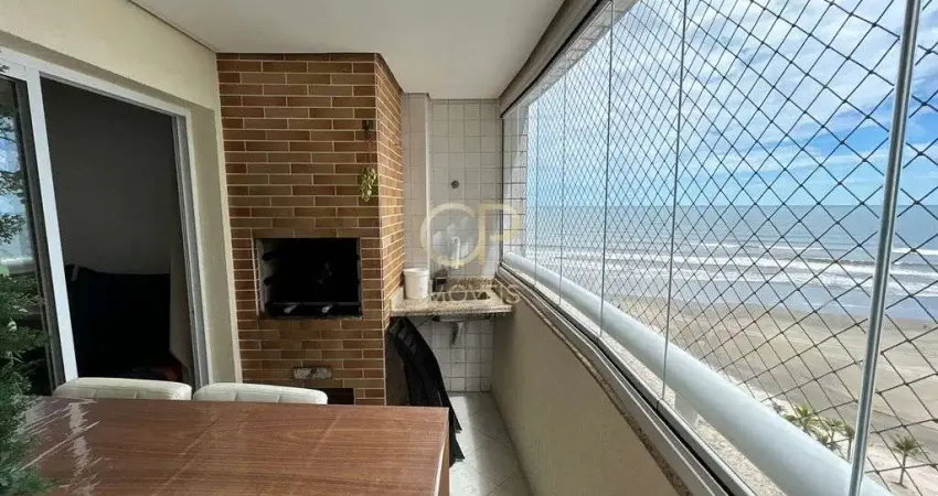 Apartamento mobiliado em prédio frente praia no bairro Real em Praia Grande/SP. São 71 m2 de área útil sendo 109 m2 de área total distribuídos em sala 2 ambientes e fechadura eletrônica, sacada gourmet envidraçada com churrasqueira a carvão e vista para o mar, cozinha com planejados e eletrodomésticos, área de serviço com vista para o mar, banheiro social com box, 2 dormitórios sendo 1 suíte ambos com ar condicionado instalado e 1 vaga de garagem. Apartamento completo sendo excelente opção para quem não quer ter trabalho com mobília e decoração. O imóvel atende o público que busca um apartamento para moradia, para quem busca um lugar de descanso aos finais de semana ou para quem busca utilizar o apartamento para fazer renda através das locações temporárias e plataformas de hospedagem. Prédio com portaria remota, salão de jogos e festas, sauna, piscina e elevadores.