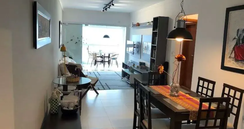 Conta com cozinha equipada e planejada, ampla sala para 2 ambientes integrada à uma espaçosa varanda gourmet envidraçada, equipada com ar-condicionado e uma vista parcial do mar.