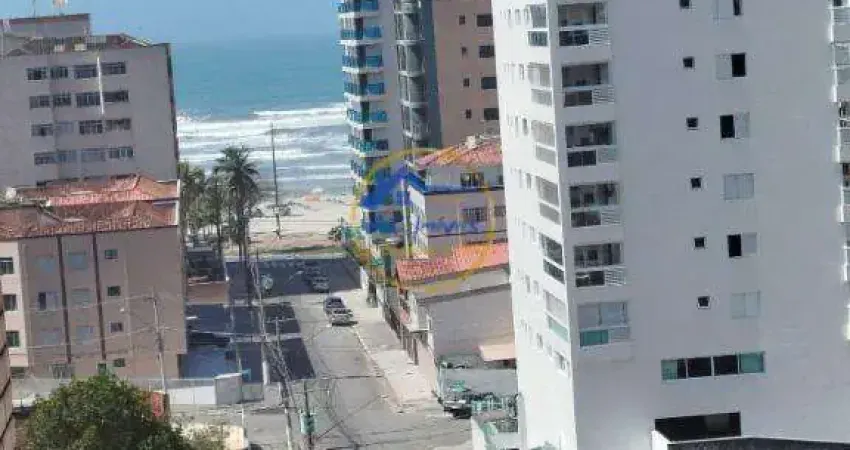 Apartamento 2 dormitórios, mobiliado, sala com vista para o mar, cozinha e área de serviço.
