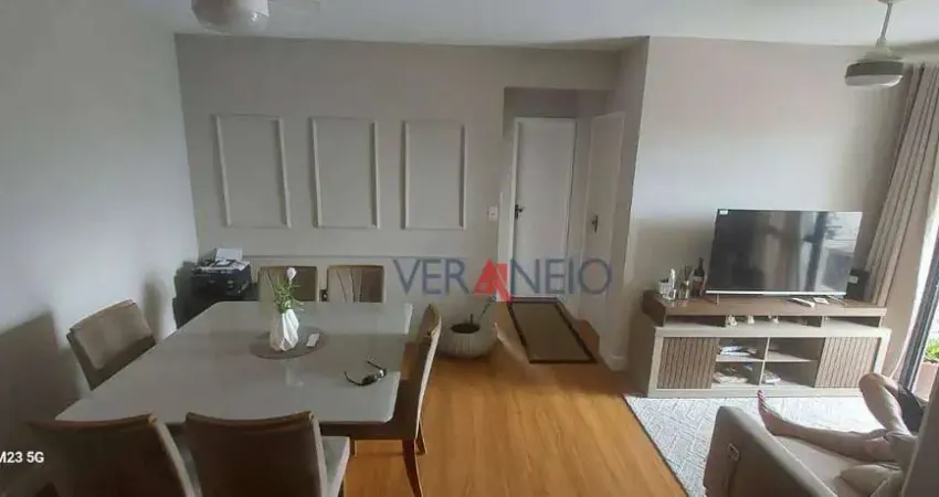 02 dormitórios sendo 01 suíte, sala dois ambientes, varanda com vista livre, cozinha, área de serviço, 1 banheiro social e 1 vaga de garagem.