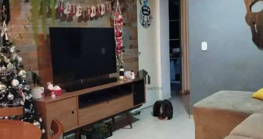 Apartamento com 48 m² sendo 2 dormitórios, sala, banheiro, cozinha e área de serviço, 1 vaga de garagem, box no banheiro, pintura nova e uma parede em tijolinhos na sala.