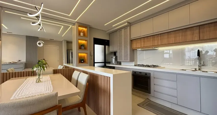 Excelente acabamento, todos ambientes com pisos em porcelanato, rebaixo de gesso com iluminação em led, móveis planejados, ar condicionado e chuveiros com aquecimento a gás.
