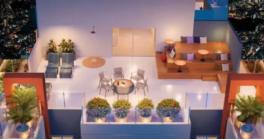 Hall social, espaço gourmet, lounge sky view, arquibancada sky view, solarium, praça de leitura, espaço delivery, salão de festas, espaço gourmet, apoio salão de festas, churrasqueira, lounge, brinquedoteca, playground, academia, piscina adulto e infantil, deck molhado, solarium e pet place.