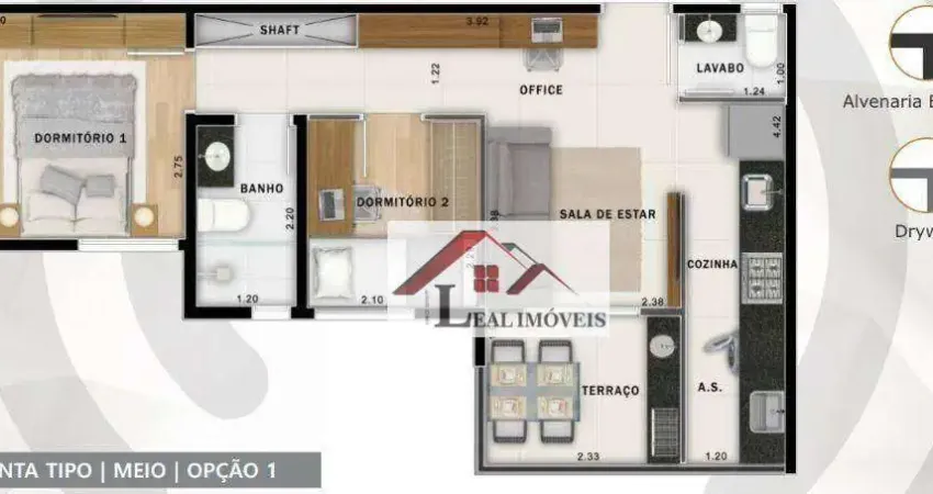 - 2 dormitórios ou opção com 1 suíte