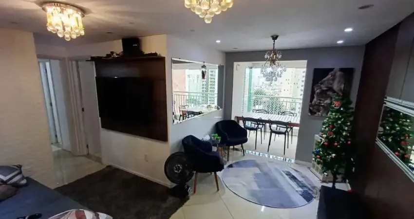 Apartamento com 72 m2 muito bem distribuído, em porcelanato e com móveis planejados de primeiríssima qualidade em todos os ambientes, 2 dormitórios, sendo uma suíte, banheiro social com box blindex, varanda gourmet envidraçada com churrasqueira a carvão, tela de proteção e vista livre privilegiada, sala ampla dois ambientes, cozinha com ampla pia em granito, área de serviço arejada semi integrada a cozinha com acesso também a varanda e 2 vagas de garagem cobertas e demarcadas.