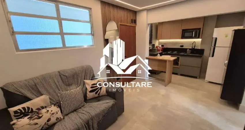 Apartamento a venda de 2 dormitórios, totalmente reformado e mobiliado, a 1 quadra da praia, 1 quadra do shopping Praiamar, 1 vaga coletiva, ideal para investidores (Airbnb), no bairro Aparecida em Santos/SP