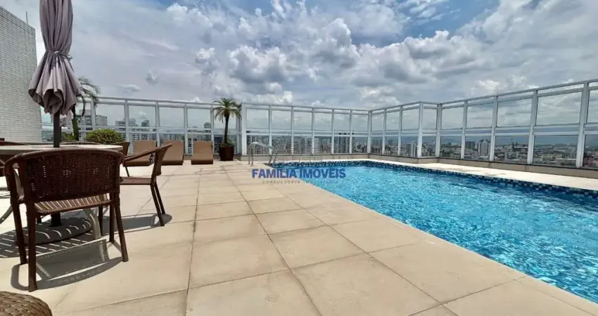 Apartamento à venda à duas quadras da praia em Santos, localizado no bairro Embaré. O imóvel possui 2 quartos, sendo 2 suítes e 1 lavabo. Conta com 86m² de área privativa e 97m² de área total. O condomínio oferece uma infraestrutura completa, com 2 elevadores, circuito fechado de TV, piscina coletiva, portaria 24hrs, sala fitness, salão de festas, salão de jogos e sauna. O apartamento ainda dispõe de armários planejados, cozinha americana, piso na sala de porcelanato e sacadas.