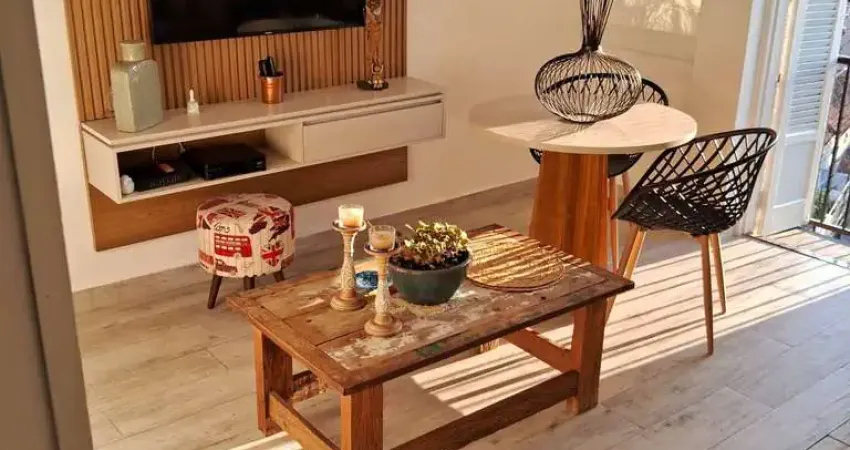 Apartamento totalmente reformado, de frente, andar alto (vista livre, bem arejado e com luminosidade total), composto por 2 dormitórios, sala pra 2 ambientes, cozinha, banheiro social, área de serviço e garagem para 1 automóvel.