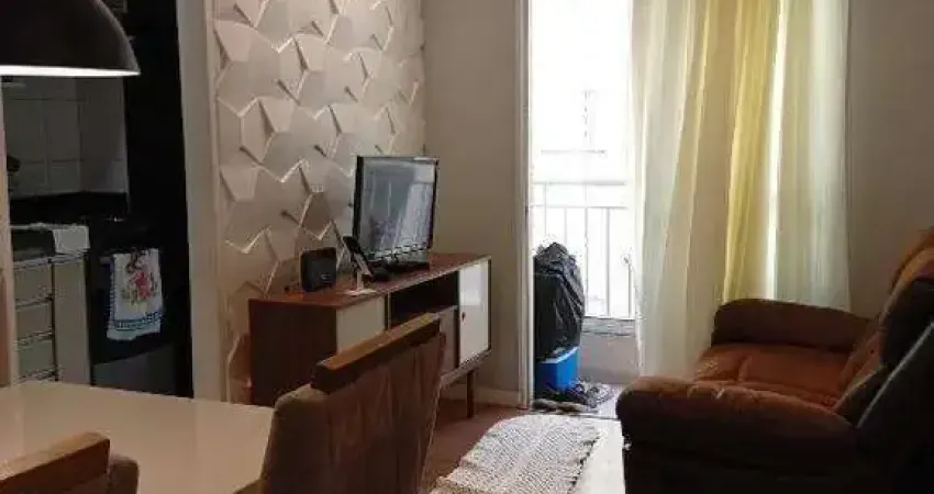 O imóvel possui 48 m² de área interna, com 2 quartos, 1 banheiro, 2 salas, varanda e 1 vaga de garagem, em posição de frente.