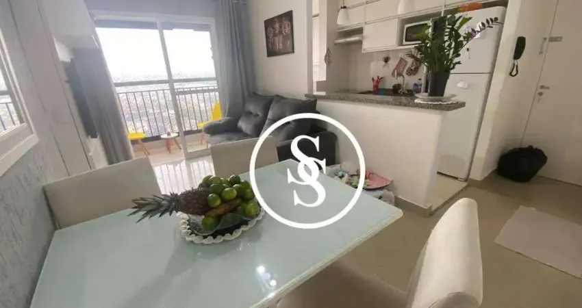 2 dormitórios, sala 2 ambientes com sacada e vista livre, cozinha, área de serviço, banheiro com box de vidro, gabinete e espelho, 1 vaga de garagem livre (rotativa). Piso porcelanato.