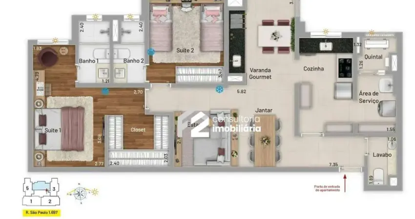 Se você busca conforto, espaço e qualidade de vida, este apartamento de 90m² é uma excelente oportunidade. Com uma planta bem distribuída, o imóvel oferece sala ampla para dois ambientes, ideal para integrar sala de estar e jantar, além de acesso direto à varanda gourmet espaçosa, perfeita para receber amigos, reunir a família ou simplesmente aproveitar momentos de descanso.