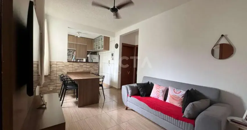 Apartamento no condomínio Parque Rio Salso, no bairro Rios di Itália, com planta prática e bem aproveitada. A sala integra-se à cozinha e à lavanderia, formando um ambiente funcional para o dia a dia. São dois quartos e banheiro, com boa distribuição de espaço e fácil circulação.