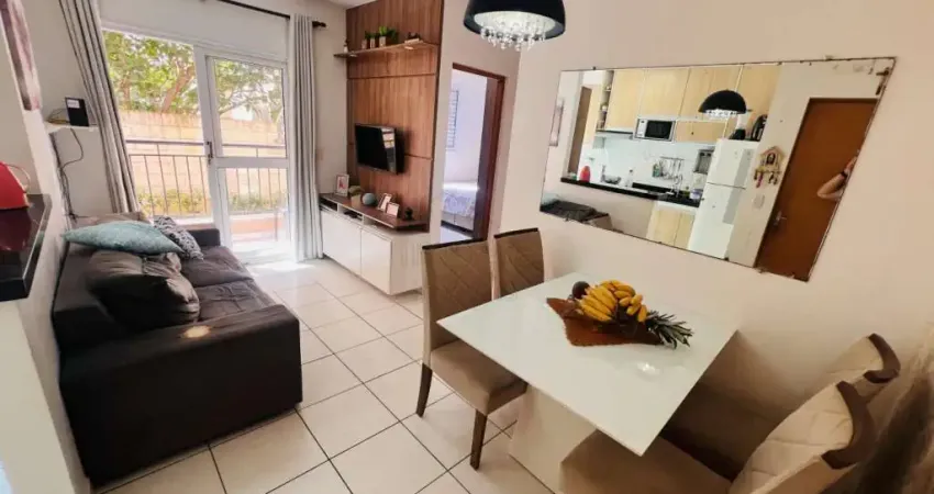 Apto no térreo, sem escadas, de canto, bem privativo, com bastante ventilação e iluminação natural, sol da manhã e sol da tarde, com 45m² de área útil, 2 dormitórios, sala 2 ambientes, jantar e estar, sacada, 1 banheiro com gabinete + box de vidro, cozinha com armários planejados, área de serviço com armário planejado e varal de teto, 01 vaga descoberta.