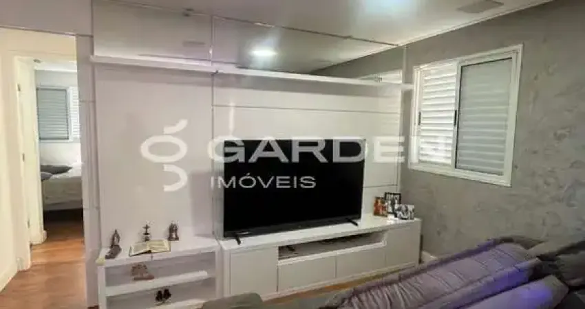 Varanda gourmet com fechamento de vidro na sacada, sala estendida com possibilidade de fazer um terceiro quarto, totalmente planejado, teto rebaixado com gesso e caixas de som embutidas na sala, led em alguns móveis planejados, pontos para instalação de ar condicionado, 01 banheiro com chuveiro.