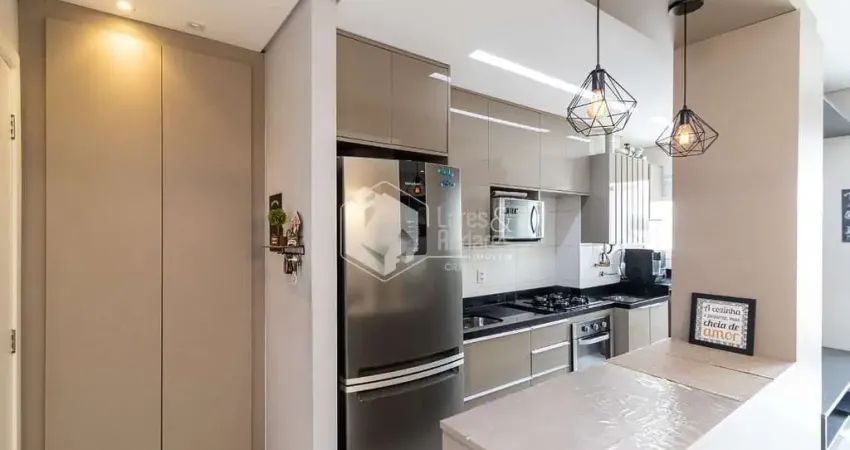 O apartamento possui 2 quartos, sendo 1 suíte, e 1 banheiros bem distribuídos para acomodar sua família com total conforto. A sala de estar e a cozinha são integradas, proporcionando um ambiente amplo e arejado, ideal para momentos de convivência. Os móveis planejados e o piso porcelanato valorizam ainda mais o espaço, enquanto a sacada oferece uma vista permanente.