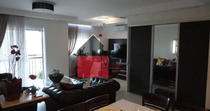 Com 102m². 2 suítes, lavabo, terraço fechado envidraçado, com churrasqueira, 2 vagas de garagem, copa-cozinha,dispensa e WC de empregada.