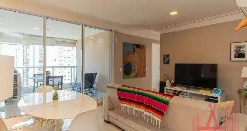 Apartamento MOBILIADO à Venda no bairro Campo Belo com 71 m², com 2 dormitórios, 2 banheiros com box de vidros, sendo 1 suíte, cozinha com (refrigerador, cooktop, forno embutido, micro-ondas, purificador de água, mesa de jantar com 4 cadeiras), área de serviços, sala de estar com sofá e rack, varanda com fechamento em vidros, armários planejados, ar-condicionado, aquecedor de água a gás e 2 vagas de garagem.