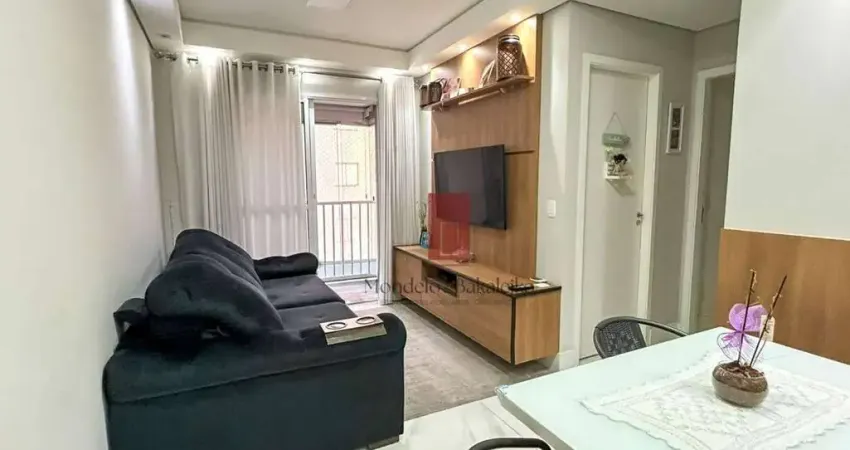 Apartamento à venda possui 57m², com 2 dormitórios, sendo 1 suíte com armários, além de 2 banheiros no total. A sala iluminada, com varanda, cozinha com armários integrada à área de serviço, criando um ambiente agradável e funcional. O imóvel conta ainda com 1 vaga de garagem.