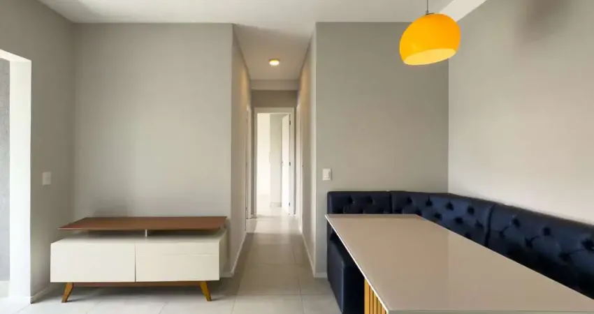A sala para dois ambientes é ampla e funcional, com canto alemão planejado, integrada à varanda com fechamento em vidro, criando um ambiente perfeito para receber amigos e aproveitar momentos em família. A cozinha americana complementa o espaço com praticidade e integração.