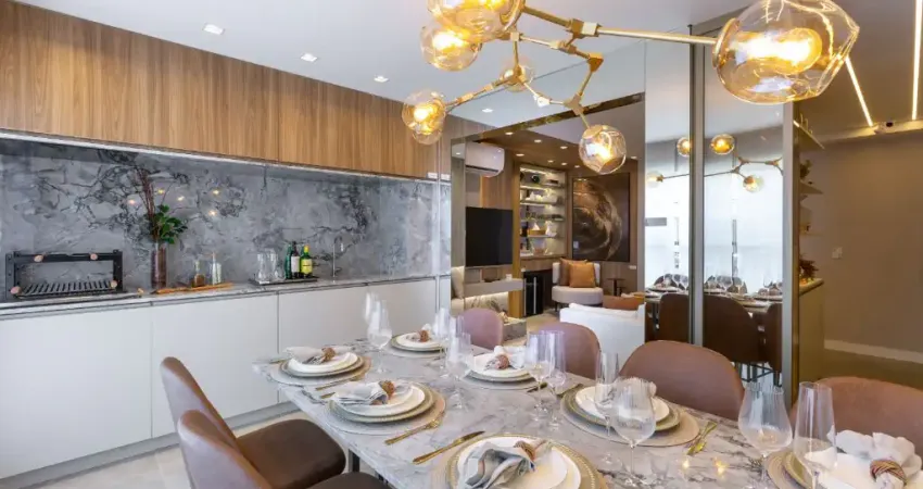 Varanda Gourmet: Amplo terraço com churrasqueira, integrado ao living para maior amplitude.