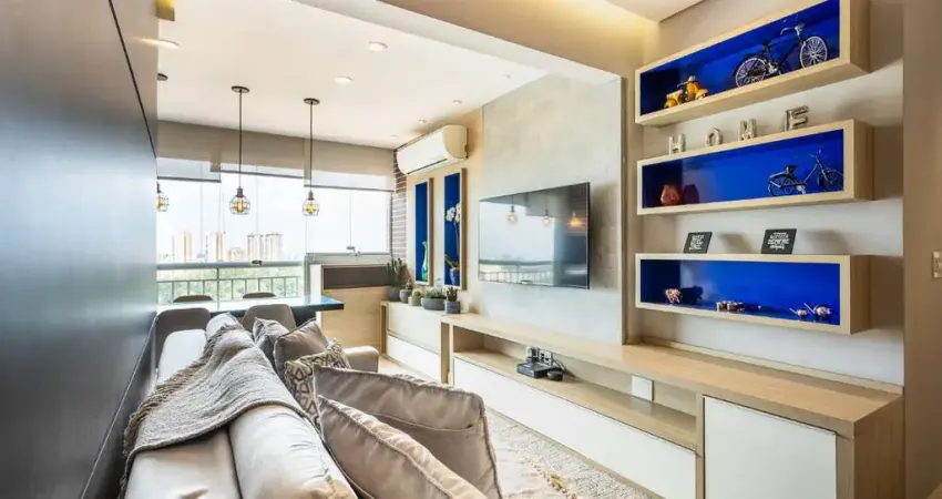 O living é integrado a uma varanda gourmet, criando um ambiente amplo e sofisticado, ideal para receber. O imóvel, decorado por arquitetos, conta com dois quartos sendo uma elegante suíte e mais um banheiro social, além de armários de excelente padrão. Aparelhos de ar-condicionado já estão instalados na suíte e na sala. A cozinha de design moderno possui diversos eletrodomésticos de alto padrão perfeitamente integrados à marcenaria, elevando o nível de praticidade e requinte. O grande destaque é a vista panorâmica maravilhosa que se estende pelo bairro, com muito verde. Conta ainda com depósito e duas vagas livres e fixas. Neste valor estão inclusos os móveis fixos, coifa, lava-louças, cooktop, forno elétrico, ar-condicionado, mesa e cadeiras do espaço gourmet e, havendo interesse, os demais itens poderão ser negociados a parte.