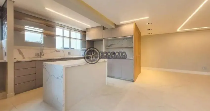 Este apartamento foi 100% reformado e oferece uma planta bem resolvida, com living generoso para três ambientes e cozinha integrada com marcenaria sob medida, além de lavabo e área de serviço.