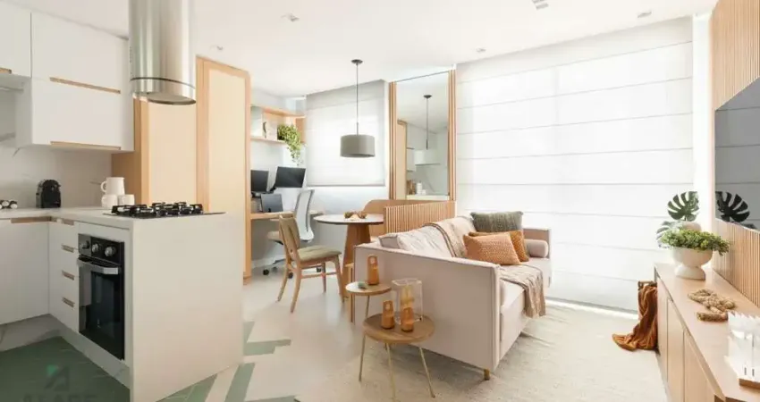 Apartamento com varanda, projetado e executado pela arquiteta Lays Florêncio, considerando o conceito aberto, mobiliado, mobiliado, contendo uma suíte americana com armários, sala living com sofá integrada a sala de jantar com canto alemão, cozinha americana com bancada com cooktop, coifa, geladeira, forno, lava-louças, lava e seca e 1 vaga de garagem coberta, no valor estão inclusos os eletrodomésticos, exceto as TVs, monitores do home office e a cadeira de escritório, condomínio com lazer completo, próximo a escolas, mercados, farmácias, pets, shoppings e grandes avenidas.