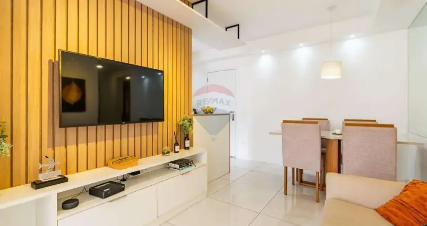 O apartamento possui 48m² muito bem distribuídos, com 2 dormitórios, 1 banheiro, sala para dois ambientes, varanda, cozinha americana com marcenaria completa e lavanderia integrada. Todos os ambientes contam com piso porcelanato, o que proporciona um acabamento moderno e de fácil manutenção.
