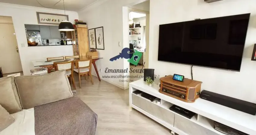 Apartamento à venda na Rua Gaivota, Moema, 71 m² e vaga de garagemApartamento de 71 m² na Rua Gaivota, em Moema, com dois dormitórios, cozinha integrada à sala e uma vaga de garagem. A cozinha foi reformada e recebeu armários novos, criando um ambiente funcional e bem resolvido para o dia a dia.A integração entre sala de estar, jantar e cozinha traz fluidez ao espaço e valoriza a entrada de luz natural ao longo do dia. Os dormitórios são amplos, com armários embutidos, e a planta ainda conta com dormitório e banheiro de serviço, ampliando as possibilidades de uso.O condomínio oferece solário e salão de festas, atendendo bem à rotina residencial. Localização com fácil acesso ao metrô Eucaliptos, Av. Santo Amaro e Av. Ibirapuera, em um trecho fora da rota de avião, garantindo mais silêncio em uma das áreas mais práticas de Moema.