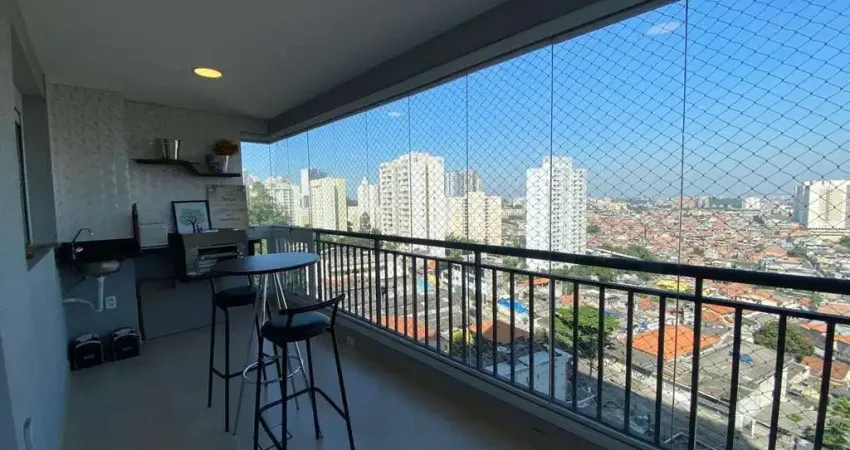 Com 87M, 2 dormitórios sendo 1 suíte, sala ampliada com 3 ambientes(possível reverte para o 3° dormitório), terraço Gourmet com churrasqueira ecológica fechado com vidro, cozinha com ilha, área de serviço + 2 vagas de garagem.