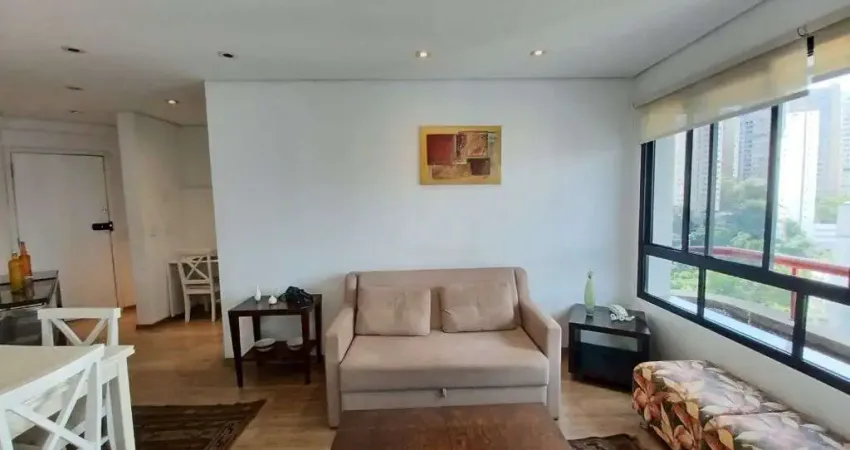 Excelente Apartamento de 59m² com 2 dormitórios sendo 1 suíte com closet Sala 2 ambientes, Sacada, Banheiro Social, Cozinha, 1 vaga de garagem. Mobiliado.