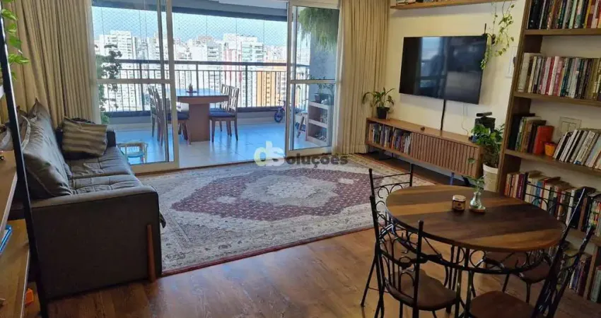 Apartamento disponível para venda na região do Tatuapé, Zona Leste de São Paulo. Excelente oportunidade de morar em uma região privilegiada. O imóvel conta com 85 metros quadrados, com 2 dormitórios sendo 2 suítes, 3 banheiros, sala ampla para 2 ambientes, terraço gourmet, cozinha com armários, área de serviço e 2 vagas de garagem. Tratamento acústico no teto e no piso laminado. Envidraçamento das duas sacadas. Móveis planejados no quarto, cozinha e sacada.