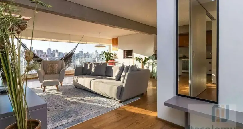 Apartamento para venda no Condomínio Edifício Vernissage, em Pinheiros. Conta com 121 m² de área útil, 2 suítes, escritório preparado para home office, amplo living para sala de estar e sala de jantar, cozinha repleta de armários planejados, lavabo, depósito, face norte, área de serviço com lavanderia, ar condicionado, varanda gourmet envidraçada e telada, andar alto, churrasqueira e 2 vagas cobertas de garagem.